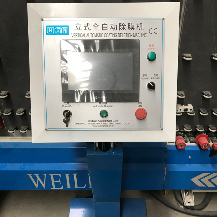 該機器屬于全自動除膜機,用于中空鍍膜玻璃膜層的去除。