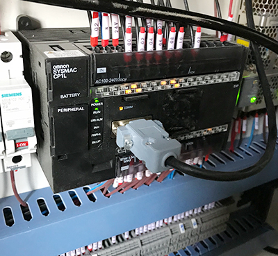 4、等間隔框另一側(cè)快要到達壓輪時,壓輪抬起,離開打膠頭時,膠閥自動關(guān)閉,停止打膠,以上程序由PC控制,時間有人機界面控制,可以觸摸調(diào)節(jié)。