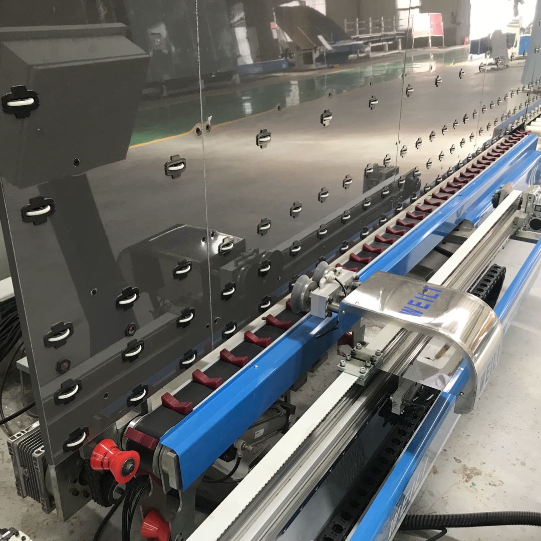 2、獨(dú)特的V型同步帶輸送,確保玻璃平穩(wěn)進(jìn)行且不易粘膠