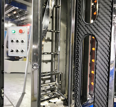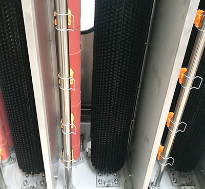 2、4對(duì)高溫尼龍絲毛刷,由4個(gè)異步電機(jī)單獨(dú)驅(qū)動(dòng),4對(duì)毛刷進(jìn)行清洗,高壓水噴嘴可拆卸清洗,易于維護(hù)。