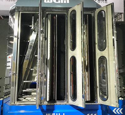4、自動(dòng)張緊壓緊傳送輥,清洗不同厚度的玻璃自動(dòng)調(diào)整,采用無(wú)油不銹鋼防水軸承,與水接觸部位采用不銹鋼、鋁或銅,使用壽命長(zhǎng);清洗段末端玻璃上下兩面各有一片軟質(zhì)材質(zhì)刮水板,玻璃在兩刮水板之間通過(guò)。